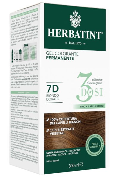Confezione contenente: 1 flacone di colore Herbatint da 120 ml; 1 flacone rivelatore colore da 120 ml; 2 bustine shampoo normalizzante da 15 ml; 2 bustine di gelatina reale da 15 ml.