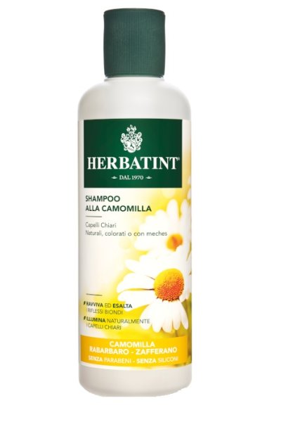 Lo Shampoo alla Camomilla della linea Haircare Herbatint, illumina il colore assicurando lucentezza ed idratazione per i capelli. Colore brillante e capelli corposi senza alterare il pH naturale.Lo Shampoo alla Camomilla ravviva ed esalta naturalmente i riflessi dei capelli biondi e castano chiari. La combinazione degli estratti di camomilla, rabarbaro e zafferano, accende di luce i riflessi; i capelli ritrovano splendore e morbidezza.