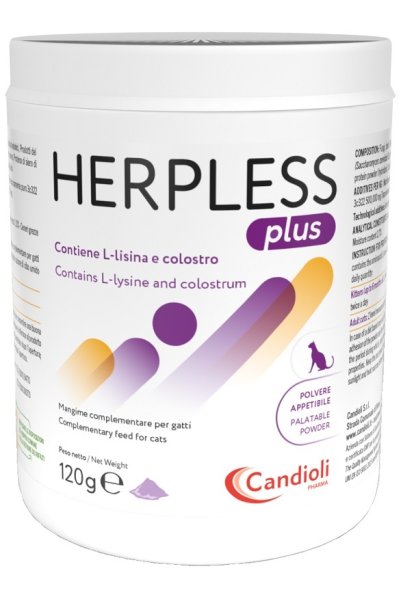 Miscelare HERPLESS plus polvere alla consueta razione di cibo umido secondo la seguente razione giornaliera: