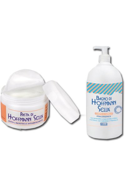 Il Bagno di Hoffmann Sella è formulato con tensioattivi a base di olio di oliva, zinco, calendula e vitamina E.