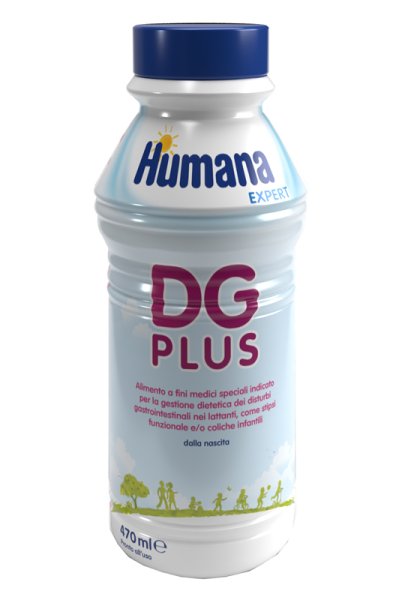 Humana DG PLUS è a base di proteine parzialmente idrolizzate del latte vaccino. Non utilizzare in caso di allergia alle proteine del latte vaccino, intolleranza al lattosio, galattosemia, malassorbimento di galattosio e glucosio.