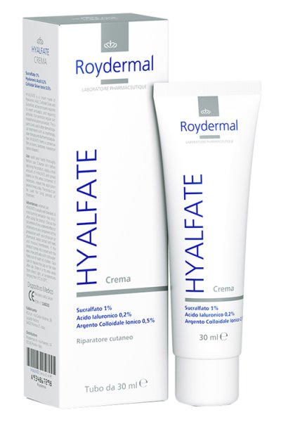 HYALFATE è una crema a base di Acido Ialuronico, Argento Colloidale e Sucralfato che, grazie ai suoi principi attivi, svolge un’azione antisettica e riparatrice della pelle, favorendo i normali processi di riepitelizzazione cutanea. Ciò è particolarmente utile dopo trattamenti dermatologici, come crioterapia, diatermo- coagulazione e laserterapia. HYALFATE forma un film protettivo nelle ustioni, piaghe da decubito, macerazione da incontinenza ed eritemi da pannolino.Dispositivo Medico CE - Ministero della Salute - RDM n° 1248203.