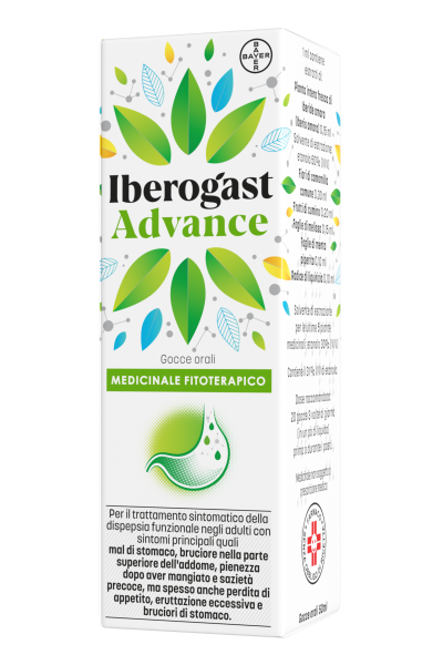 IBEROGASTADVANCE è un medicinale fitoterapico per il trattamento sintomatico della dispepsia funzionale, un disturbo digestivo i cui sintomi principali sono dolori di stomaco, bruciore nella parte superiore dell'addome, pienezza dopo aver mangiato e sazietà precoce, ma spesso anche perdita di appetito, eruttazione eccessiva e bruciori di stomaco.