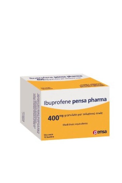 AvvertenzeIn pazienti asmatici l’ibuprofene deve essere utilizzato con cautela, dopo aver consultato il medico. L’uso di IBUPROFENE PENSA PHARMA, come di qualsiasi farmaco inibitore della sintesi delle prostaglandine e della cicloossigenasi è sconsigliato nelle donne che intendano iniziare una gravidanza. La somministrazione di IBUPROFENE PENSA PHARMA dovrebbe essere sospesa nelle donne che hanno problemi di fertilità o che sono sottoposte a indagini sulla fertilità. L’uso di IBUPROFENE PENSA PHARMA deve essere evitato in concomitanza di FANS, inclusi gli inibitori selettivi della COX–2. Gli effetti indesiderati possono essere minimizzati con l’uso della più bassa dose efficace per la più breve durata possibile di trattamento che occorre per controllare i sintomi (vedere i paragrafi sottostanti sui rischi gastrointestinali e cardiovascolari). Effetti cardiovascolari e cerebrovascolari: Studi clinici suggeriscono che l’uso di ibuprofene, specialmente ad alte dosi (2400 mg/die), può essere associato a un modesto aumento del rischio di eventi trombotici arteriosi (es. infarto del miocardio o ictus). In generale, gli studi epidemiologici non suggeriscono che basse dosi di ibuprofene (es. ≤ 1200 mg/die) siano associate a un aumento del rischio di eventi trombotici arteriosi. I pazienti con ipertensione non controllata, insufficienza cardiaca congestizia (II–III classe NYHA), cardiopatia ischemica accertata, malattia arteriosa periferica e/o malattia cerebrovascolare devono essere trattati con ibuprofene soltanto dopo attenta considerazione e si devono evitare dosi elevate (2400 mg/die). Attenta considerazione deve essere esercitata anche prima di avviare al trattamento a lungo termine i pazienti con fattori di rischio per eventi cardiovascolari (es. ipertensione, iperlipidemia, diabete mellito, abitudine al fumo di sigaretta), soprattutto se sono necessarie dosi elevate (2400 mg/die) di ibuprofene. Anziani : i pazienti anziani hanno un aumento della frequenza di reazioni avverse ai FANS, specialmente emorragie e perforazioni gastrointestinali, che possono essere fatali (vedere paragrafo 4.2). Emorragia gastrointestinale, ulcerazione e perforazione : durante il trattamento con tutti i FANS, in qualsiasi momento, con o senza sintomi di preavviso o precedente storia di gravi eventi gastrointestinali, sono state riportate emorragia gastrointestinale, ulcerazione e perforazione, che possono essere fatali. Negli anziani e in pazienti con storia di ulcera, soprattutto se complicata da emorragia o perforazione (vedere paragrafo 4.3), il rischio di emorragia gastrointestinale, ulcerazione o perforazione è più alto con dosi aumentate di FANS. Questi pazienti devono iniziare il trattamento con la più bassa dose disponibile. L’uso concomitante di agenti protettori (misoprostolo o inibitori di pompa protonica) deve essere considerato per questi pazienti e anche per pazienti che assumono basse dosi di aspirina, acido acetilsalicilico o altri farmaci che possono aumentare il rischio di eventi gastrointestinali (vedere sotto e paragrafo 4.5). Pazienti con storia di tossicità gastrointestinale, in particolare anziani, devono riferire qualsiasi sintomo gastrointestinale inusuale (soprattutto emorragia gastrointestinale) in particolare nelle fasi iniziali del trattamento. Controllare attentamente i pazienti che assumono farmaci concomitanti che potrebbero aumentare il rischio di ulcerazione o emorragia, come corticosteroidi orali, anticoagulanti come warfarin, inibitori selettivi del reuptake della serotonina o agenti antiaggreganti come l’acido acetilsalicilico (vedere paragrafo 4.5). Quando si verifica emorragia o ulcerazione gastrointestinale in pazienti che assumono IBUPROFENE PENSA PHARMA il trattamento deve essere sospeso. I FANS devono essere somministrati con cautela nei pazienti con una storia di malattia gastrointestinale (colite ulcerosa, morbo di Crohn) poiché tali condizioni possono essere esacerbate (vedere paragrafo 4.8 – Effetti indesiderati). Cautela è richiesta prima di iniziare il trattamento nei pazienti con anamnesi positiva per ipertensione e/o insufficienza cardiaca poiché in associazione al trattamento con i FANS sono stati riscontrati ritenzione di liquidi, ipertensione ed edema. Gravi reazioni cutanee alcune delle quali fatali, includenti dermatite esfoliativa, sindrome di Stevens–Johnson e necrolisi tossica epidermica, sono state riportate molto raramente in associazione con l’uso dei FANS (vedere paragrafo 4.8). Nelle prime fasi della terapia i pazienti sembrano essere a più alto rischio: l’insorgenza della reazione si verifica nella maggior parte dei casi entro il primo mese di trattamento. IBUPROFENE PENSA PHARMA deve essere interrotto alla prima comparsa di rash cutaneo, lesioni della mucosa o qualsiasi altro segno di ipersensibilità. Rischio di alterazione della funzionalità renale in bambini e adolescenti disidratati. IBUPROFENE PENSA PHARMA 400 mg granulato per soluzione orale contiene: – saccarosio: pazienti con problemi di rara malattia ereditaria al fruttosio, malassorbimento di glucosio e galattosio e insufficienza di saccarasi–isomaltasi non devono assumere questo medicinale. – aspartame, una fonte di fenilalanina. Pertanto è controindicato nei soggetti con fenilchetonuria. – 45 mg di sodio (1,9 mmol) per bustina. Di ciò devono tenere conto i pazienti con ridotta funzionalità renale o in dieta iposodica. – 90 mg di potassio (2,3 mmol) per bustina. Da tenere in considerazione in persone con ridotta funzionalità renale o che seguono una dieta ipopotassica.