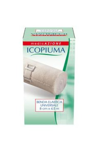 Benda elastica universale 8 cm x 4,5 m. Indicata per bendaggi compressivi leggeri, traumi distorsivi lievi e per la protezione delle medicazioni. Robusta, elasticità costante, permeabile all'aria, facile da applicare. È un dispositivo medico CE. Tutte le referenze Icopiuma sono caratterizzate da materiali di alta qualità: i supporti di grado medicale utilizzati sono morbidi e confortevoli, gli adesivi sono ipoallergenici e privi di solventi, particolarmente delicati sulla pelle e i tamponi offrono un grande potere assorbente.