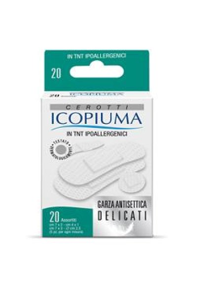 Dispositivo medico CE 0373.Cerotti in TNT ipoallergenici assortiti in diversi formati: 7 x 2 cm, 4 x 1 cm, 7 x 3 cm, ø 2,5 cm.