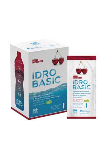 Integratore alimentare di minerali alcalinizzanti (citrati di potassio e magnesio), dolcificato con stevia. Ideale nel gestire e prevenire alcune patologie collegate alla disidratazione, e favorire una situazione di benessere derivante da un corretto equilibrio idrico dell'organismo. L'idropinoterapia è particolarmente importante in taluni soggetti sottoposti a forte disidratazione o ad aumentati fabbisogni: donne in gravidanza, atleti e sportivi in genere, bambini, anziani, pazienti affetti da calcoli renali, osteoporosi, dissenteria o in terapia con diuretici, lassativi e cortisonici. Idrobasic inoltre, apporta la giusta quantità di potassio e magnesio, al normale metabolismo energetico e alla normale funzione muscolare e ossea. Il tutto è stato realizzato utilizzando una miscela a bassissimo contenuto calorico (massimo 25 kcal per ogni bustina). Idrobasic ha una natura alcalina, infatti, essendo a base di citrato, è anche utile ad integrare una dieta povera di valenze alcaline (frutta e verdura) o compensare una dieta con elevato apporto di proteine o grassi che determinerebbero un eccessivo carico acido per l'organismo.