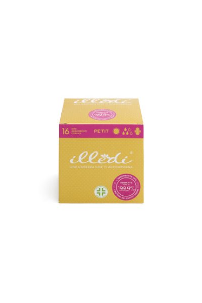 Dispositivo Medico CE, classe I. Mini assorbente con ali: 180 mm. Formato leggermente ridotto ed ultrasottile con strato in cotone misto ipoallergenico che lascia la pelle asciutta e regala a chi lo indossa una sensazione di freschezza.