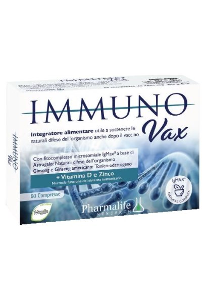 IgMax [estratto secco di astragalo radice (Astragalus membranaceus Moench.) titolato al 16% in polisaccaridi, estratto secco di propoli titolato al 10% in flavonoidi, estratto secco di ginseng coreano radice (Panax ginseng C.A. Mey.) titolato al 20% in ginsenosidi, estratto secco di ginseng americano radice (Panax quinquefolius L.) titolato al 5% in ginsenosidi; gomma da acacia]; agenti di carica: cellulosa microcristallina, fosfato dicalcico; zinco gluconato (zinco 13,23%); anti-agglomeranti: biossido di silicio, sali di magnesio degli acidi grassi; vitamina D3 (colecalciferolo 0,25%).