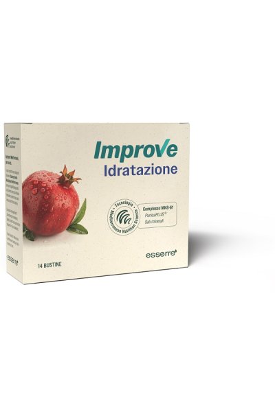 Gli ingredienti di improve idratazione contribuiscono a: azione antiossidante (melograno); riduzione della stanchezza e dell'affaticamento, equilibrio elettrolitico, normale funzionamento del sistema nervoso, normale sintesi proteica (magnesio); normale metabolismo energetico, normale funzione muscolare (magnesio e calcio).