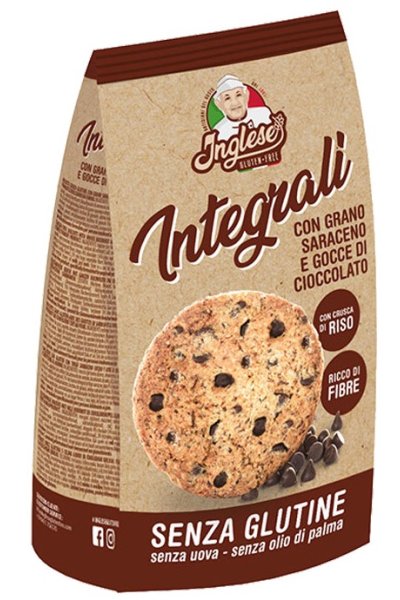 Biscotti integrali con grano saraceno, un cereale integrale che contiene calcio, fosforo, potassio e con gocce di cioccolato.