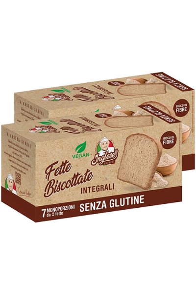 Fette biscottate integrali senza glutine e senza lattosio, preparate con ingredienti di alta qualità. Adatte a persone celiache, vegane e allergiche ai principali allergeni alimentari. A basso contenuto di grassi saturi e di zuccheri, confezionate in pratiche monoporzioni da due fette. Ideali per iniziare la giornata con energia.