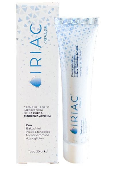 Crema gel ad azione lenitiva, è utile a contrastare le imperfezioni della cute a tendenza acneica, grazie alla presenza di Bakuchiol, acido mandelico, Azeloglicina, Cardiospemum halicacabum, vitamina PP, Acnacidol BG, tea tree oil.
