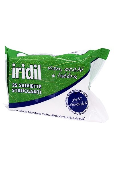 Le salviette struccanti Iridil sono state studiate per rimuovere delicatamente il trucco da viso, occhi, labbra e collo rispettando il pH delle pelli più delicate. Con olio di mandorle dolci, aloe vera e bisabololo, noti per le loro proprietà addolcenti, rinfrescanti, lenitive, emollienti ed idratanti.