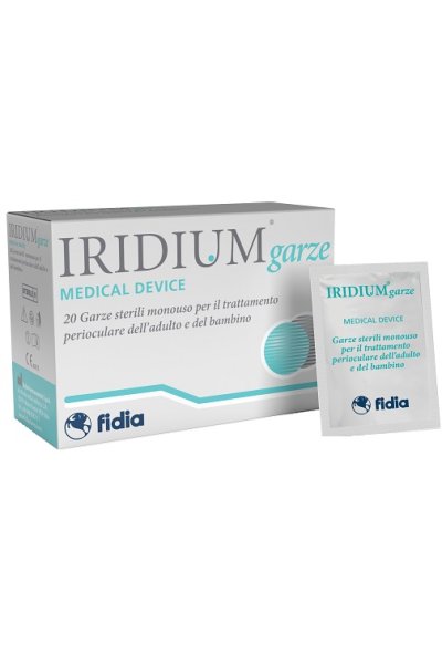 Dispositivo medico CE 0373 sterile. Iridium garze è indicato per la rimozione, dalle palpebre e dalle ciglia, di croste, cispe o secrezioni dovute a fenomeni infiammatori e/o infettivi. Il suo utilizzo è consigliato anche in associazioni a terapie specifiche in caso di patologie oculari di tipo allergico, infiammatorio o infettivo. Trova impiego per il trattamento perioculare prima e dopo interventi di chirurgia oftalmica e in corso di trattamenti per occlusioni del canalicolo lacrimale.Componenti