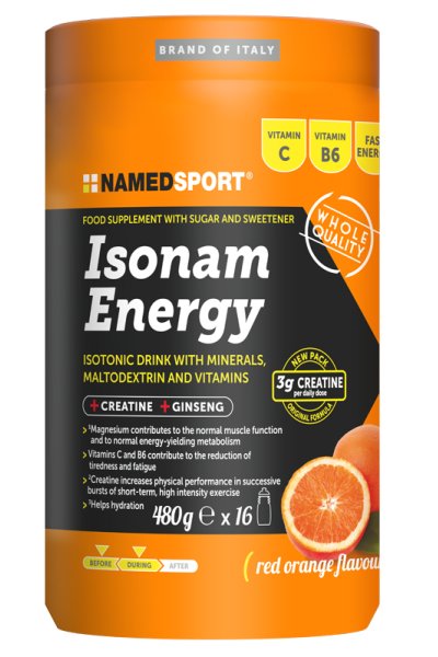 Isonam Energy, a base di maltodestrine, minerali e vitamine, arricchita con creatina e ginseng. Magnesio e potassio contribuiscono alla fisiologica funzionalità muscolare. Il ginseng vanta proprietà toniche e può risultare utile in caso di stanchezza fisica e mentale.