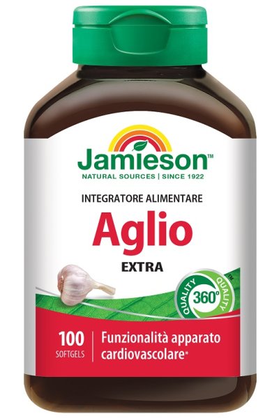 Integratore a base di aglio (Allium sativum L.) formulato per coloro che hanno necessità di migliorare la funzionalità cardiovascolare. L'aglio di Jamieson aglio extra non è raffinato e viene lavorato a freddo, permettendo così di preservare tutti i principi attivi in esso contenuti. La dose giornaliera è di 3 perle, che forniscono 9 mg di estratto oleoso di aglio, equivalenti a 4.500 mg di bulbo fresco.