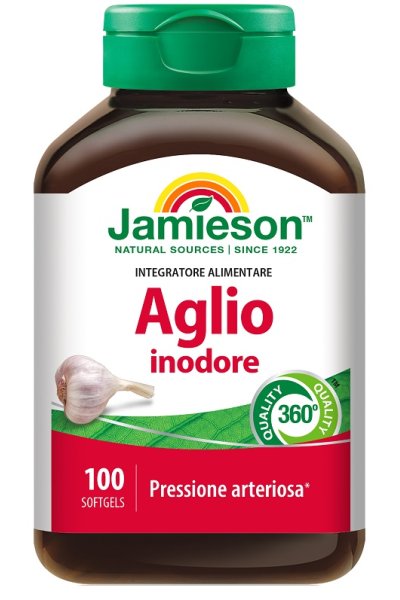 Integratore alimentare di aglio inodore. L'aglio è utile per regolare la funzionalità dell'apparato cardiovascolare e la pressione arteriosa; è utile per il metabolismo dei trigliceridi e del colesterolo. L'aglio inodore di Jamieson contiene aglio ultra puro filtrato a freddo tramite un processo chiamato "metodo veloce di essiccazione" attraverso il quale l'odore viene eliminato senza denaturare i principi attivi.