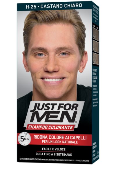 Shampoo colorante per uomo in vari colori: castano chiaro naturale, castano medio naturale, castano scuro naturale, nero.