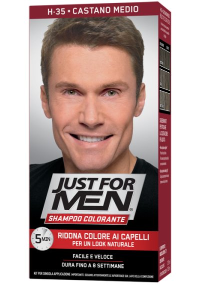 Shampoo colorante per uomo. La formula brevettata Gray Target Technology copre solo i capelli grigi con una tonalità che si armonizza con il tuo colore naturale. Senza ammoniaca, delicato sui capelli.