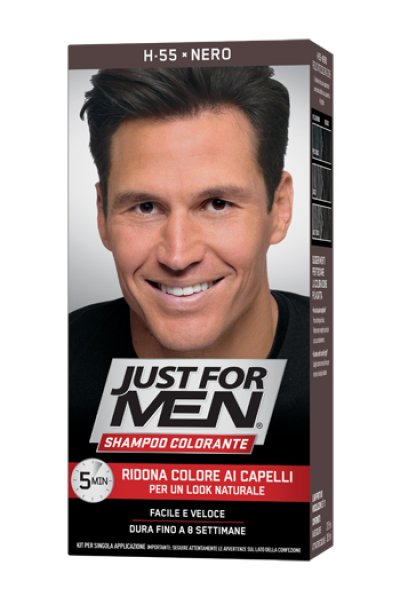 Shampoo colorante per uomo. La formula brevettata Gray Target Technology copre solo i capelli grigi con una tonalità che si armonizza con il tuo colore naturale. Senza ammoniaca, delicato sui capelli.