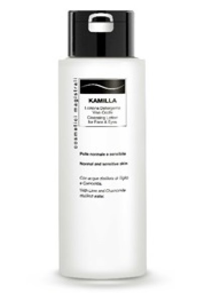 Lozione detergente viso-occhi senza risciacquo a base di acque distillate di camomilla e tiglio.