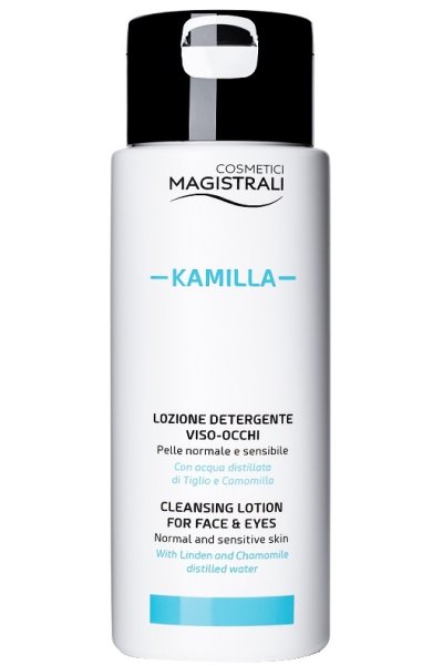 Lozione detergente viso-occhi, senza risciacquo. Lozione formulata allo stesso pH e concentrazione salina del liquido lacrimale. Senza aggiunta di profumazioni, Kamilla coniuga l'azione lenitiva e calmante dell'Acqua distillata e dell'Olio di Camomilla con l'azione rinfrescante e distensiva dell'Acqua distillata di Tiglio. Per pelle normale e sensibile.Modalità d'uso