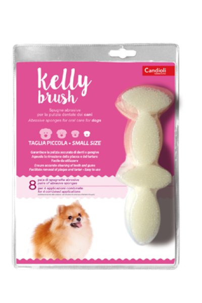Le spugnette KELLY BRUSH possono essere più agevolmente applicate sulle dita partendo dalla metà delle unghie e rivestendo la parte interna del dito. In caso di utilizzo su gatti o su cani di piccolissima taglia è possibile applicare la spugnetta su un bastoncino di idonea dimensione.