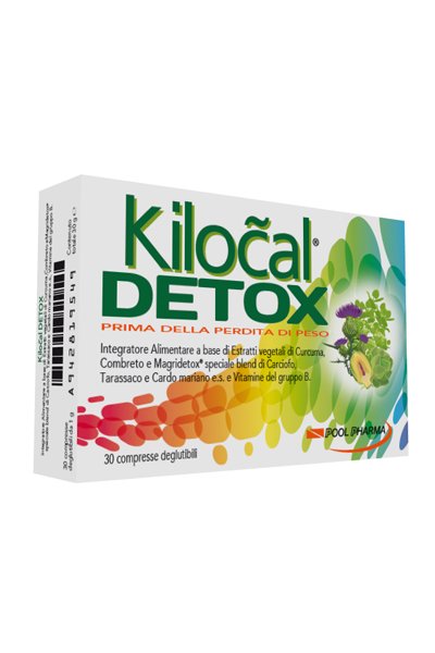 Integratore alimentare a base di estratti vegetali con Magridetox, acido ialuronico, vitamine B6 e B12. La sua formulazione è stata appositamente studiata per essere assunta prima di iniziare una dieta finalizzata alla riduzione del peso corporeo. Kilocal Detox contiene MagriDetox, uno speciale blend di estratti vegetali detossicanti quali carciofo, tarassaco e il cardo mariano, che in associazione sinergica, concorrono a favorire la funzione epatica. Inoltre, contiene l'estratto di combreto che favorisce la funzione epatobiliare, mentre la boswellia serrata contrasta gli stati di tensione localizzata. In particolare il tarassaco e il carciofo favoriscono inoltre le funzioni depurative dell'organismo. Le vitamine B6 e B12 contribuiscono rispettivamente alla riduzione di stanchezza e affaticamento e contribuiscono al mantenimento del normale metabolismo energetico.