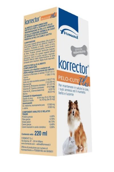 Agitare prima dell'uso. Riempire il misurino con Korrector Pelo-Cute Plus secondo le quantità giornaliere consigliate e versare nella ciotola del cane o del gatto mescolando con cura al cibo in essa contenuto. Può essere somministrato anche direttamente in bocca. Non superare le quantità consigliate.