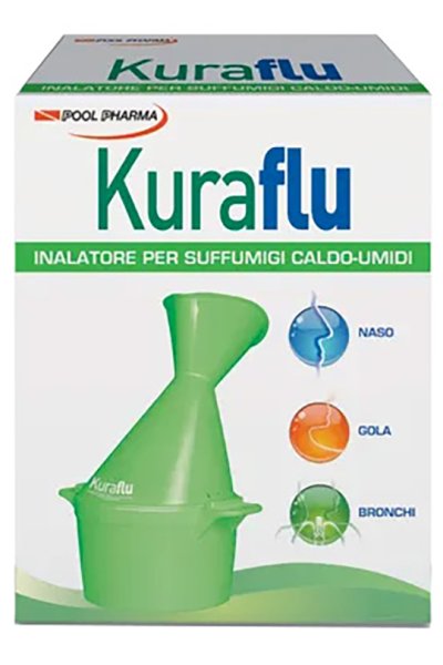 Inalatore da utilizzare con le apposite compresse per fomenti balsamici studiato per favorire l'inalazione di suffumigi caldo-umidi in caso di problematiche di gola, naso e bronchi.