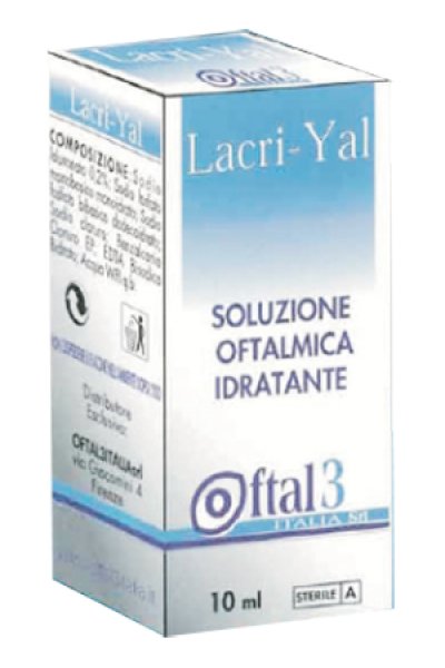 Lacri-Yal è una soluzione oftalmica a base di acido ialuronico sale sodico 0,2%. L'acido ialuronico, grazie alle sue proprietà chimico-fisiche, aderisce perfettamente alla superficie corneale e così ne consente una proficua idratazione e lubrificazione. L'acido ialuronico impiegato nel Lacri-Yal è di origine biotecnologica e di alto peso molecolare tale da conferirgli alto potere di adesione e lungo tempo di permanenza a contatto con la cornea. Rappresenta il rimedio ideale in caso di secchezza oculare dovuta a vari fattori quali stress, polveri, fumo, esposizione prolungata ai raggi solari, lavoro continuo ai videoterminali, lunghi periodi di guida, uso di lenti a contatto.