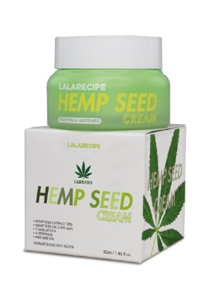 Crema viso idratante e lenitiva di lunga durata (fino a 100 ore) contenente il 70% di estratto di semi di canapa e 2.000 ppm di olio di semi di canapa.