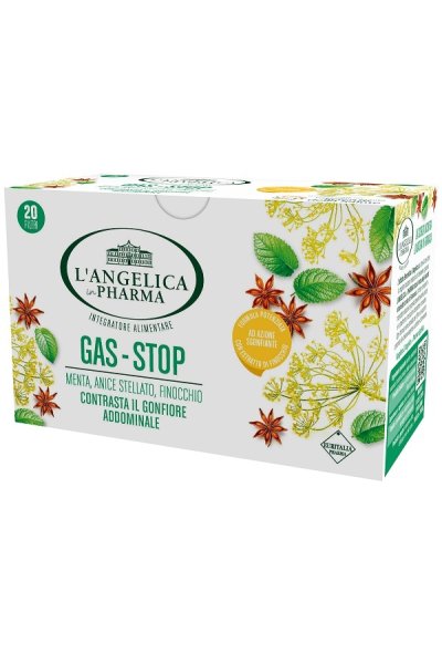 La tisana GAS-STOP aiuta a contrastare il fastidioso gonfiore addominale. Menta e anice stellato aiutano ad eliminare i fastidiosi gas che si formano nell'intestino, a seguito di fermentazioni di ingredienti poco digeribili, stimolandone l'eliminazione. La formula è stata potenziata con l'estratto di finocchio, dalle note proprietà carminative, favorisce la fisiologica eliminazione dei gas intestinali e aiuta la digestione.