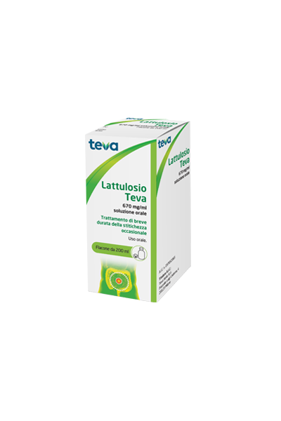 AvvertenzeL’abuso di lassativi (uso frequente o prolungato o con dosi eccessive) può causare diarrea persistente con conseguente perdita di acqua, sali minerali (specialmente potassio) e altri fattori nutritivi essenziali. Nei casi più gravi è possibile l’insorgenza di disidratazione o ipopotassiemia la quale può determinare disfunzioni cardiache o neuromuscolari, specialmente in caso di contemporaneo trattamento con glicosidi cardiaci, diuretici o corticosteroidi. L’abuso di lassativi, specialmente quelli di contatto (lassativi stimolanti), può causare dipendenza (e, quindi, possibile necessità di aumentare progressivamente il dosaggio), stitichezza cronica e perdita delle normali funzioni intestinali (atonia intestinale). In caso di insufficiente effetto terapeutico dopo diversi giorni, si consiglia di consultare un medico. Lattulosio Teva 670 mg/ml soluzione orale può contenere tracce di zuccheri derivanti dal procedimento di sintesi (non più di 67 mg/ml di lattosio, 100 mg/ml di galattosio, 67 mg/ml di epilattosio, 27 mg/ml di tagatosio e 7 mg/ml di fruttosio). I pazienti con rari problemi ereditari di intolleranza al galattosio o al fruttosio, carenza di lattasi o malassorbimento di glucosio–galattosio, non devono assumere questo medicinale. Il lattulosio deve essere somministrato con cautela ai pazienti intolleranti al lattosio. La dose normalmente utilizzata non dovrebbe rappresentare un problema per i diabetici. 15 ml di Lattulosio Teva 670 mg/ml soluzione orale contengono 42,7 KJ (10,2 kcal) = 0,21 unità di carboidrati. I pazienti con sindrome gastro–cardiaca (sindrome di Roemheld) devono assumere il lattulosio solo previa consultazione di un medico. Se dopo l’assunzione di lattulosio, tali pazienti lamentano sintomi quali meteorismo o gonfiore, si deve ridurre la dose o interrompere il trattamento. L’uso cronico di dosi non adeguate e l’abuso del farmaco possono causare diarrea e disturbi del bilancio elettrolitico. Durante la terapia con lassativi si raccomanda di bere una quantità sufficiente di liquidi (1,5 – 2 l/giorno, pari a 6 – 8 bicchieri). Il trattamento della stitichezza cronica o ricorrente richiede sempre l’intervento del medico per la diagnosi, la prescrizione dei farmaci e la sorveglianza nel corso della terapia. Consultare il medico quando la necessità del lassativo deriva da un improvviso cambiamento delle precedenti abitudini intestinali (frequenza e caratteristiche delle evacuazioni) che duri da più di due settimane o quando l’uso del lassativo non riesce a produrre effetti. È inoltre opportuno che i soggetti anziani o in non buone condizioni di salute consultino il medico prima di usare il medicinale. L’uso inappropriato a lungo termine di lattulosio in pazienti anziani o in pazienti che si trovano in cattive condizioni generali può alterare l’equilibrio elettrolitico. Popolazione pediatrica: Nei bambini al di sotto dei 12 anni il medicinale può essere usato solo dopo aver consultato il medico. Il lattulosio va somministrato con cautela a neonati e bambini piccoli con intolleranza ereditaria al fruttosio autosomica recessiva. Il riflesso della defecazione potrebbe subire variazioni durante il trattamento con il lattulosio.