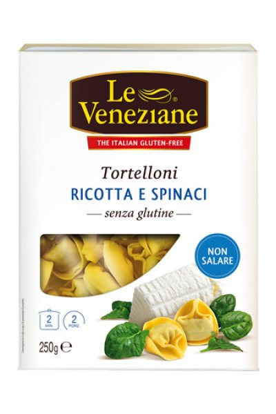 Tortelloni con ripieno alla ricotta e spinaci senza glutine. Prodotto specificamente formulato per persone intolleranti al glutine.