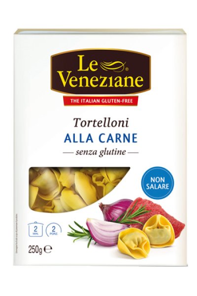 Tortelloni con ripieno alla carne senza glutine. Prodotto specificamente formulato per persone intolleranti al glutine.