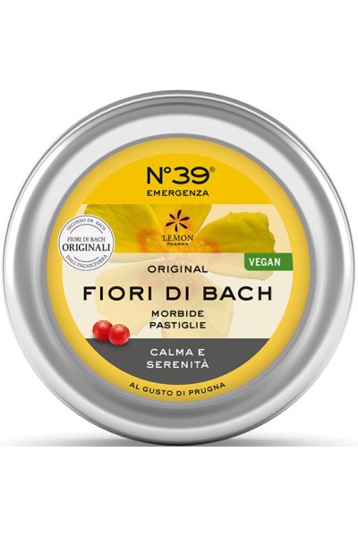 Integratore alimentare con dolcificanti ed essenze di fiori di Bach, vitamine e microelementi sotto forma di pastiglie senza zucchero in succo di acacia (gomma arabica).