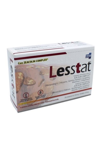 Lesstat contiene un complesso di sostanze (Monacolina,Gomma xantano, Chitosano, Licopene), che intervengono attraverso un'azione sinergica dei componenti sopradetti nel favorire la regolarizzazione della colesterolemia, con una serie di interventi sia di tipo inibente l'assorbimento del colesterolo, associato ad una diminuzione della sua sintesi, sia attraverso un'attività di tipo antiossidante e protettiva.
