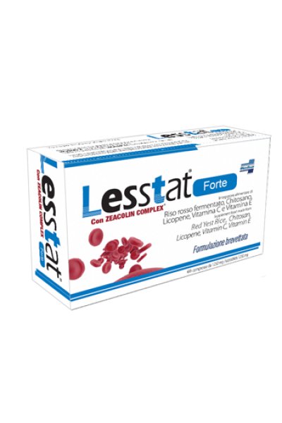 Integratore alimentare di riso rosso fermentato, chitosano, licopene, vitamina C e vitamina E utile in caso di diminuito apporto od aumentato fabbisogno di tali nutrienti. Lesstat Forte deve essere sempre utilizzato come integrazione, associata ad un corretto stile di vita (alimentazione controllata e bilanciata ed attività sica regolare).
