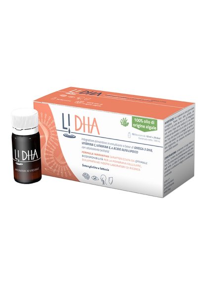 Li DHA è un integratore alimentare in forma di emulsione liquida al 5% di DHA (504 mg/10 mL). Il contenuto in DHA di metà flaconcino (5 mL) è pari alla dose nutrizionale giornaliera indicata da EFSA (250 mg/die).