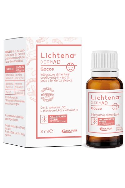 Lichtena DERMAD Gocce è stato progettato con una tecnologia brevettata Allergen Free; un metodo innovativo che consente di evitare l'uso di ogni potenziale allergene sia nella produzione dei ceppi probiotici che nel prodotto finito.