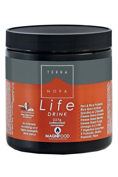 Miscela bilanciata di proteine vegetali, crusca di riso attiva, alghe spirulina e clorella, piante verdi liofilizzate, bacche di vario tipo liofilizzate, miscela di omega 3, 6, 9, nel rapporto di 2:1:1 (vegetariana), ganoderma, shiitake; probiotici: Lactobacillus plantarum, Lactobacillus casei, Lactobacillus rhamnosus, Lactobacillus acidophilus, Bifidobacterium lactis; prebiotici, enzimi digestivi, rizoma di zenzero liofilizzato.