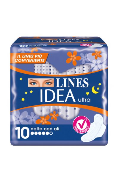 Gli assorbenti Lines Idea sono ipoallergenici e, con il 25% in più di cuore assorbente, garantiscono la massima assorbenza offrendo una continua sensazione di morbidezza sulla pelle. Dotati di un nuovo design super femminile assicura il massimo comfort e protezione per renderti libera di vivere la tua giornata anche con il ciclo.