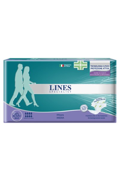 Il pannolone a mutandina Lines Specialist Maxi misura media è indicato per persone affette da incontinenza gravissima.