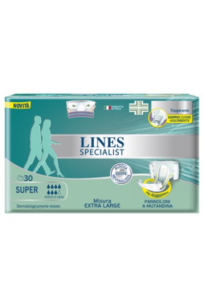 Il pannolone a mutandina Lines Specialist Super misura Extra Grande è indicato per persone affette da incontinenza grave.