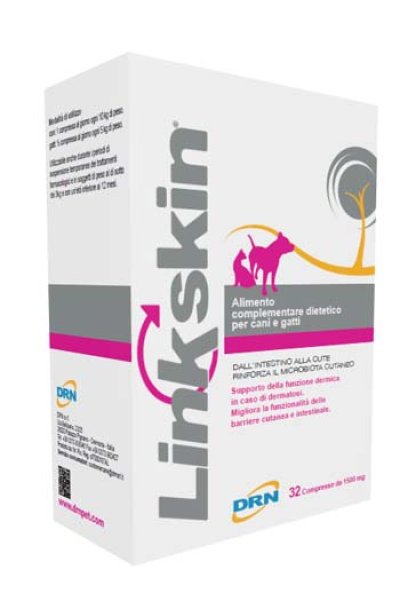 Linkskin compresse, grazie all'associazione dei suoi componenti, previene e contrasta le alterazioni cutanee (ad es. dermatite atopica), favorendo l'equilibrio del microbiota cutaneo e intestinale, rinforzando il sistema immunitario e svolgendo attività antiossidante. È il prodotto ideale per la prevenzione e la riduzione del prurito e delle manifestazioni cliniche associate alla dermatite allergica e atopica nei cani e nei gatti.
