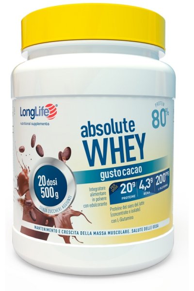 Integratore alimentare di proteine ad elevato valore biologico utile nelle situazioni di ridotto apporto proteico con la razione alimentare o di aumentato fabbisogno. Le proteine contribuiscono alla crescita ed al mantenimento della massa muscolare e aiutano la salute delle ossa. Absolute WHEY, oltre a contenere proteine del siero di latte ad elevata assimilabilità e solubilità, contiene L-glutamina, un aminoacido importante per il metabolismo proteico.