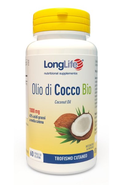 | Olio di cocco naturalmente ricco di: -Acido laurico 44,7-50,7% -Acido miristico 15,5-19,5% -Acido palmitico 6,5-10,5% -Acido oleico 4,1-8,1% -Acido caprilico 6,9-10,9% -Acido caprico 4,3-8,3% -Acido stearico 0,7-4,7% -Acido linoleico 0-1,8% | 1.000 mg 447-507 mg 155-195 mg 65-105 mg 41-81 mg 69-109 mg 43-83 mg 7-47 mg 0-18 mg |