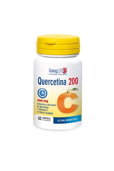 Integratore alimentare di quercetina e vitamina C a rilascio graduale. Favorisce l'aumento delle difese immunitarie.